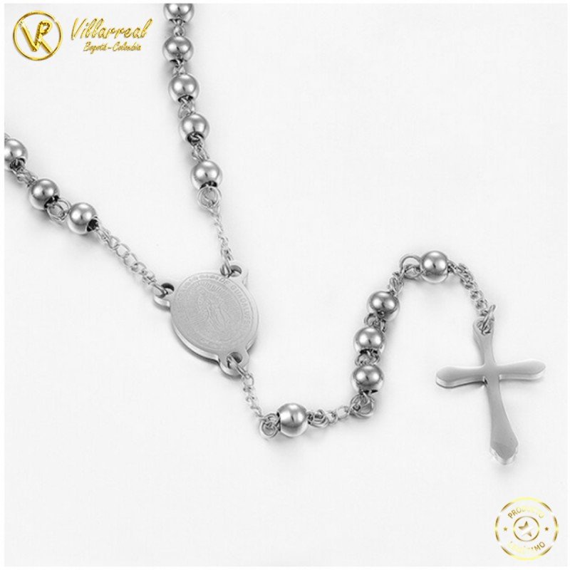 Camándula Rosario Escapulario Plateado en Acero Quirúrgico Cristo y Virgen María 5 Milímetros